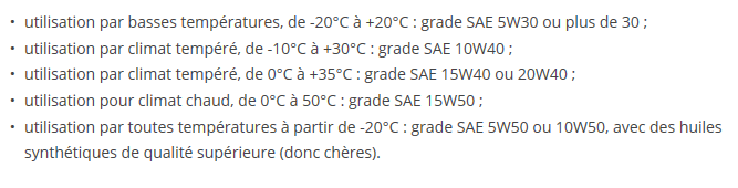 Perso, je vais me garder une marge supplémentaire en basse température, pour une utilisation en 4 saisons, 10W50 (-10° / +50°).