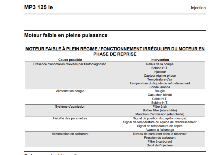 Ça pourrait être un mode dégradé pour protéger le moteur d'un dysfonctionnement. Tu as un voyant moteur qui s'allume donc la MIU détecte bien un problème. Ton concessionnaire a scanné le scooter avec la valise Piaggio et n'a trouvé aucune erreur en mémoire??...A-t-il la valise?? Quoi qu'il en soit, si tu veux gagner du temps faut passer par une identification des erreurs pour commencer à s'attaquer aux défauts présents en mémoire.