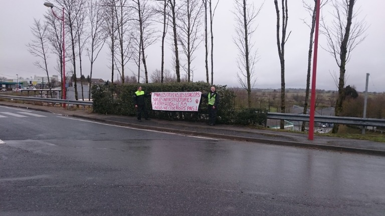 On va direction Rodez mais on s’arrête 2 heures à Baraqueville bloquer LE rond-point de la région.